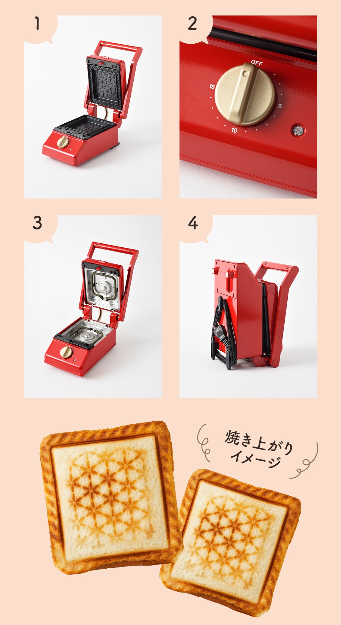 ギュッと挟んで焼くだけで、ホットサンドが手早く完成します。